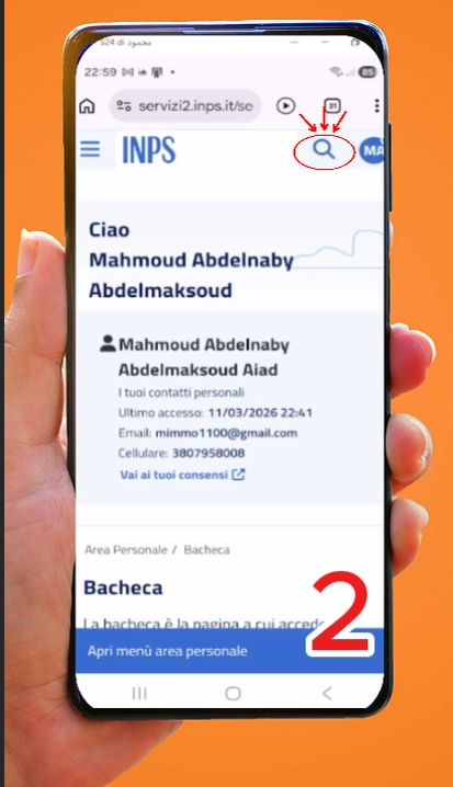 افتح المتصفح وادخل على الموقع الرسمي: www.inps.it.