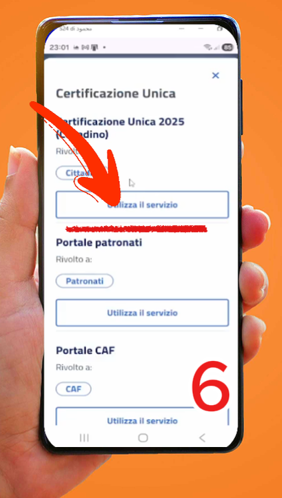 هيظهرلك قائمة بالخدمات، اختار خدمة Certificazione Unica واضغط على Approfondisci.