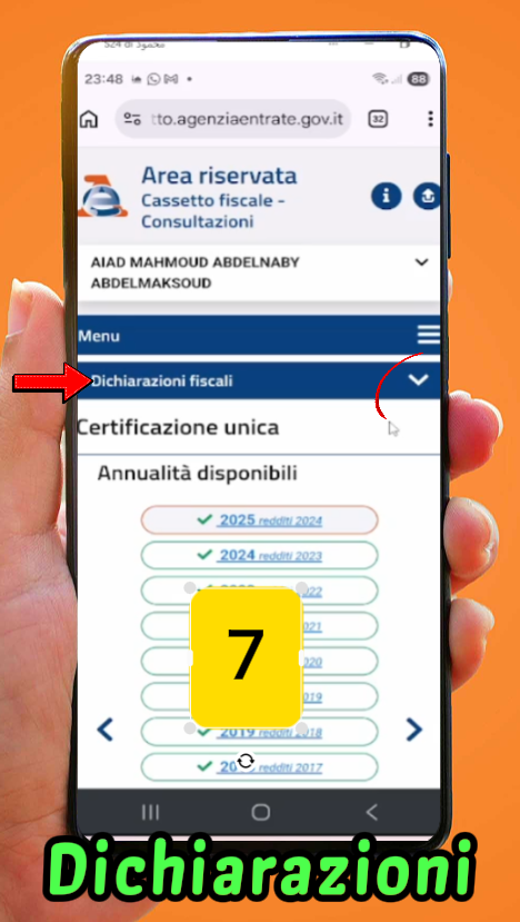 6. ادخل إلى قسم Dichiarazioni Fiscali.