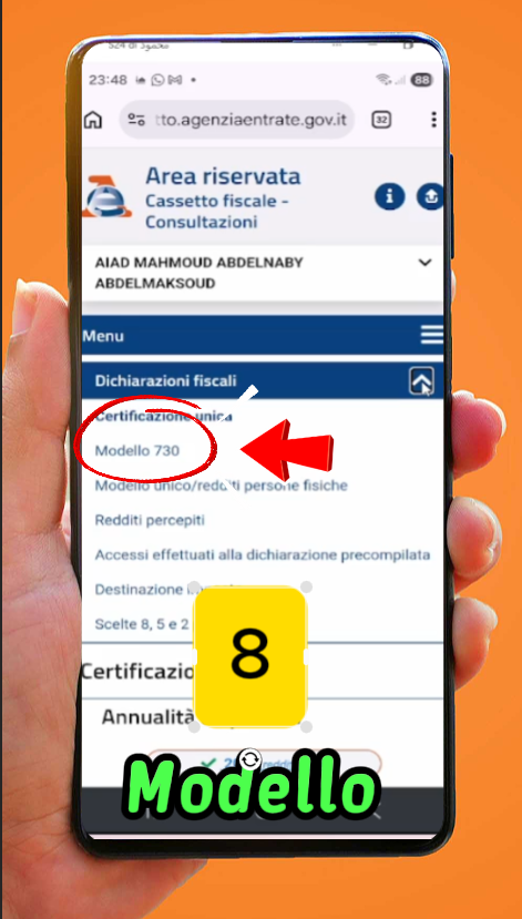 طريقة تحميل نموذج 730 في إيطاليا من الموبايل في ثواني